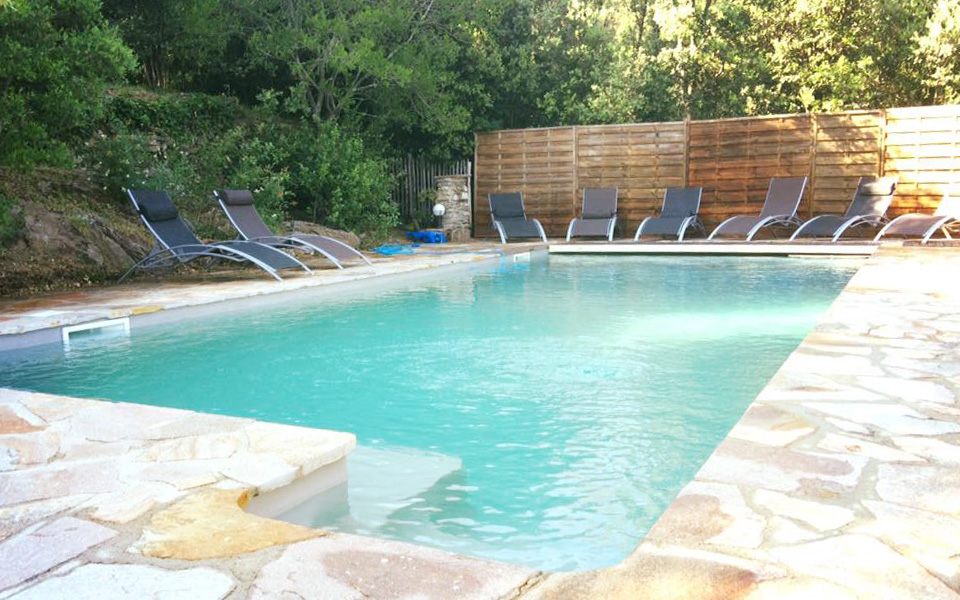 une piscine sécurisée de 4m x 8m commune aux trois gites.
