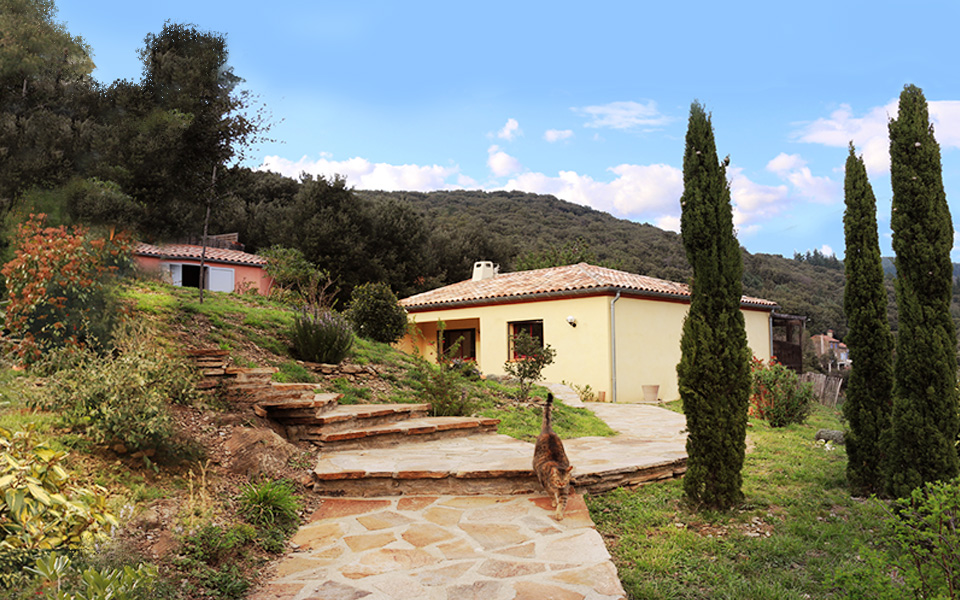Construits sur la vieille vigne en terrasse de la Coste, les trois gîtes Carignan, Viognier et Aramon offrent une vue imprenable sur la vallée du Jaur, la montagne et le village de Prémian.
