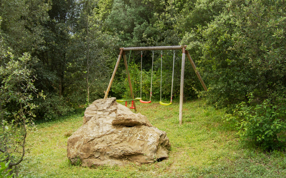 Le jardin de 4000 m2 est paysagé avec des jeux pour enfants,